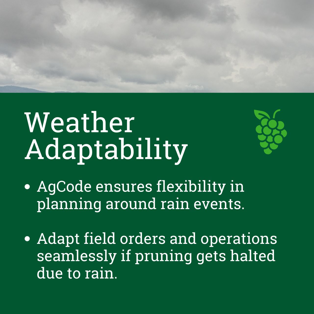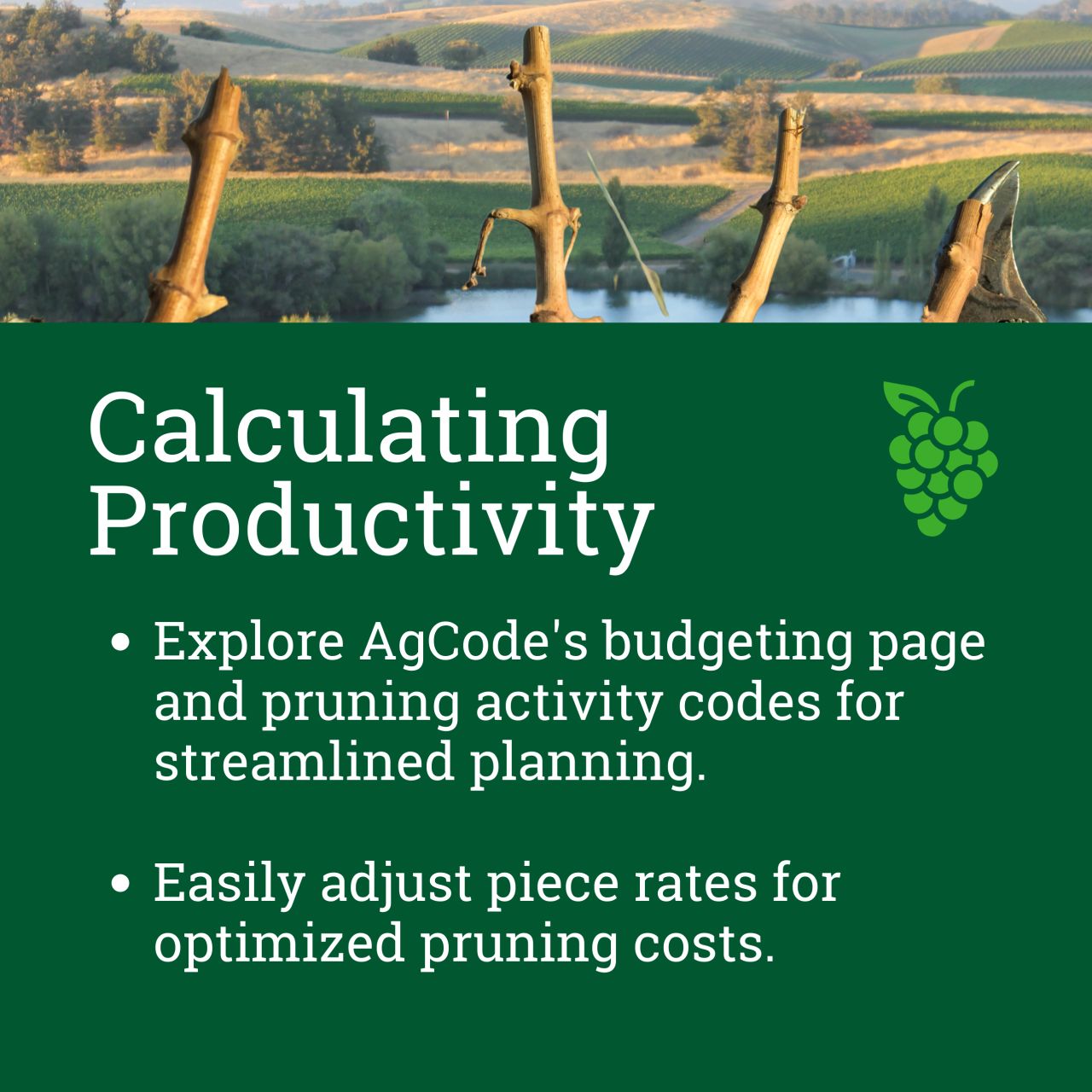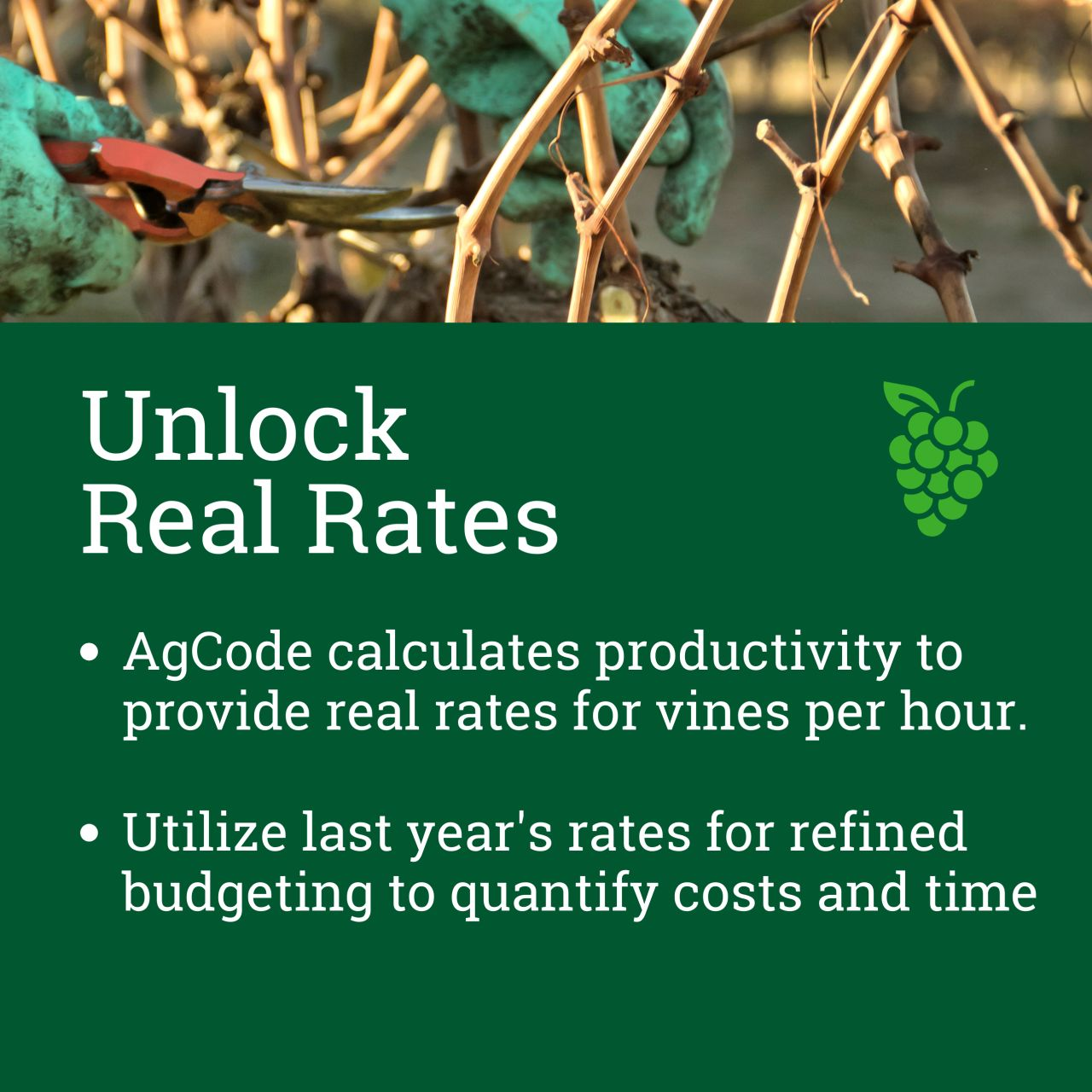 Calculate vines per hour, plan around rain events, and quantify productivity rates for budgeting.