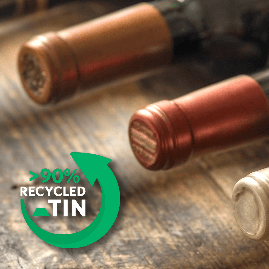 - Premium tin capsules and sparkling foil – With more than 90% recycled tin