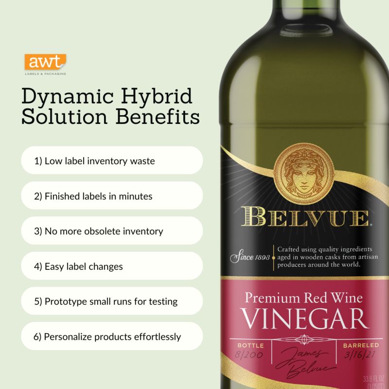 With AWT On Demand's Dynamic Hybrid Printing, we can custom print your branded master label. You can choose to add standout embellishments with foils or embossing for that extra touch of elegance and distinction.