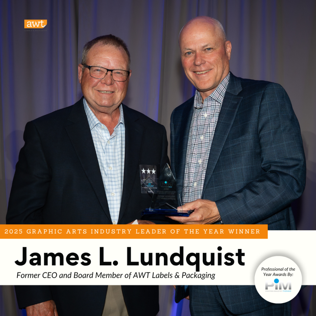 The award was accepted by Operations Lead Ryan Nichols and Ink Department Manger Chris Sandberg. Ryan was nominated for Young Professional of the Year, a testament to his talent and leadership. Finally, we celebrate Jim Lundquist, honored as the Graphic Arts Industry Leader of the Year. Jim’s legacy of excellence continues to inspire all of us at AWT.