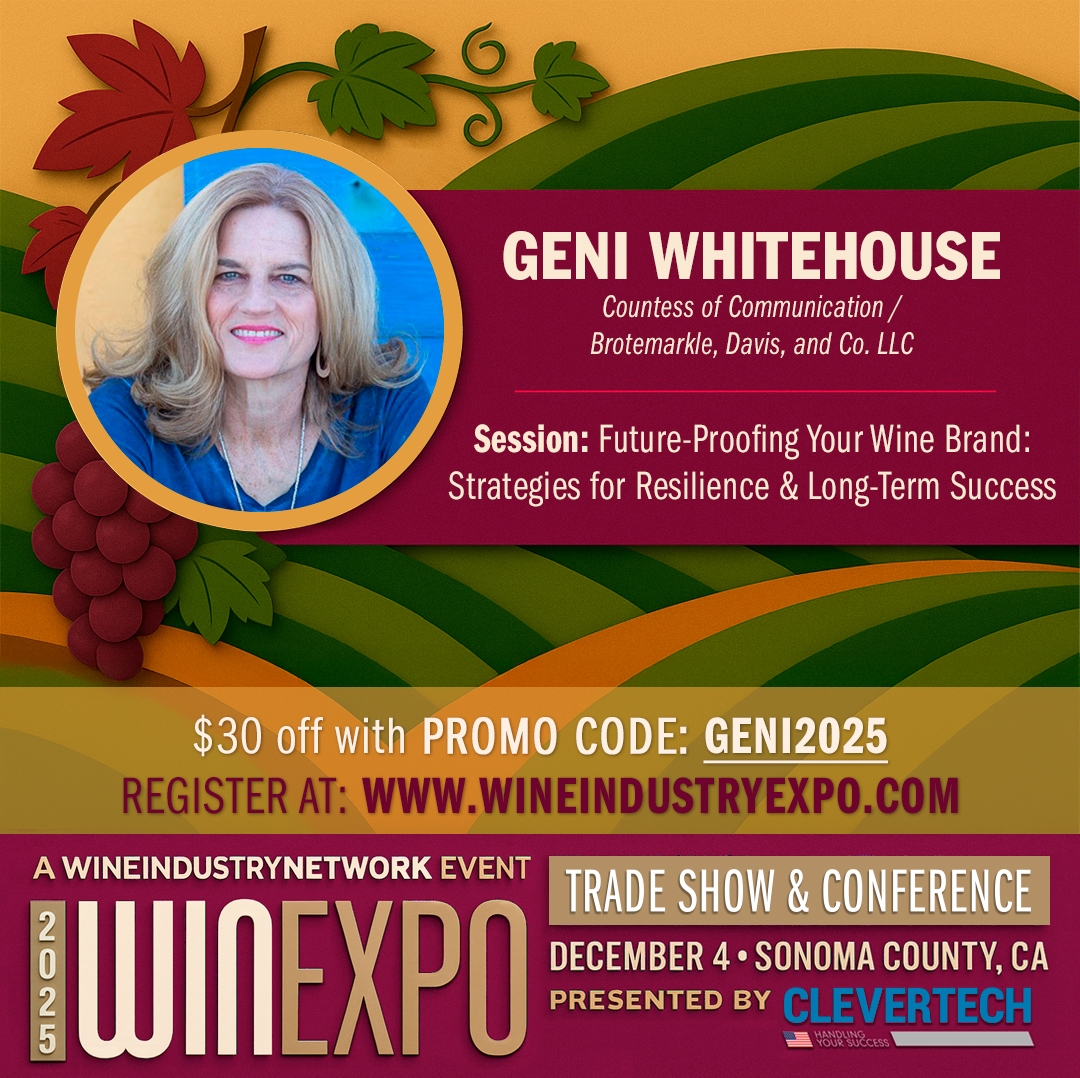 Geni will be joining a panel of seasoned industry leaders for "Future-Proofing Your Wine Brand: Strategies for Resilience & Long-Term Success" — a session designed to help wineries navigate today's toughest challenges with actionable strategies attendees can implement immediately.