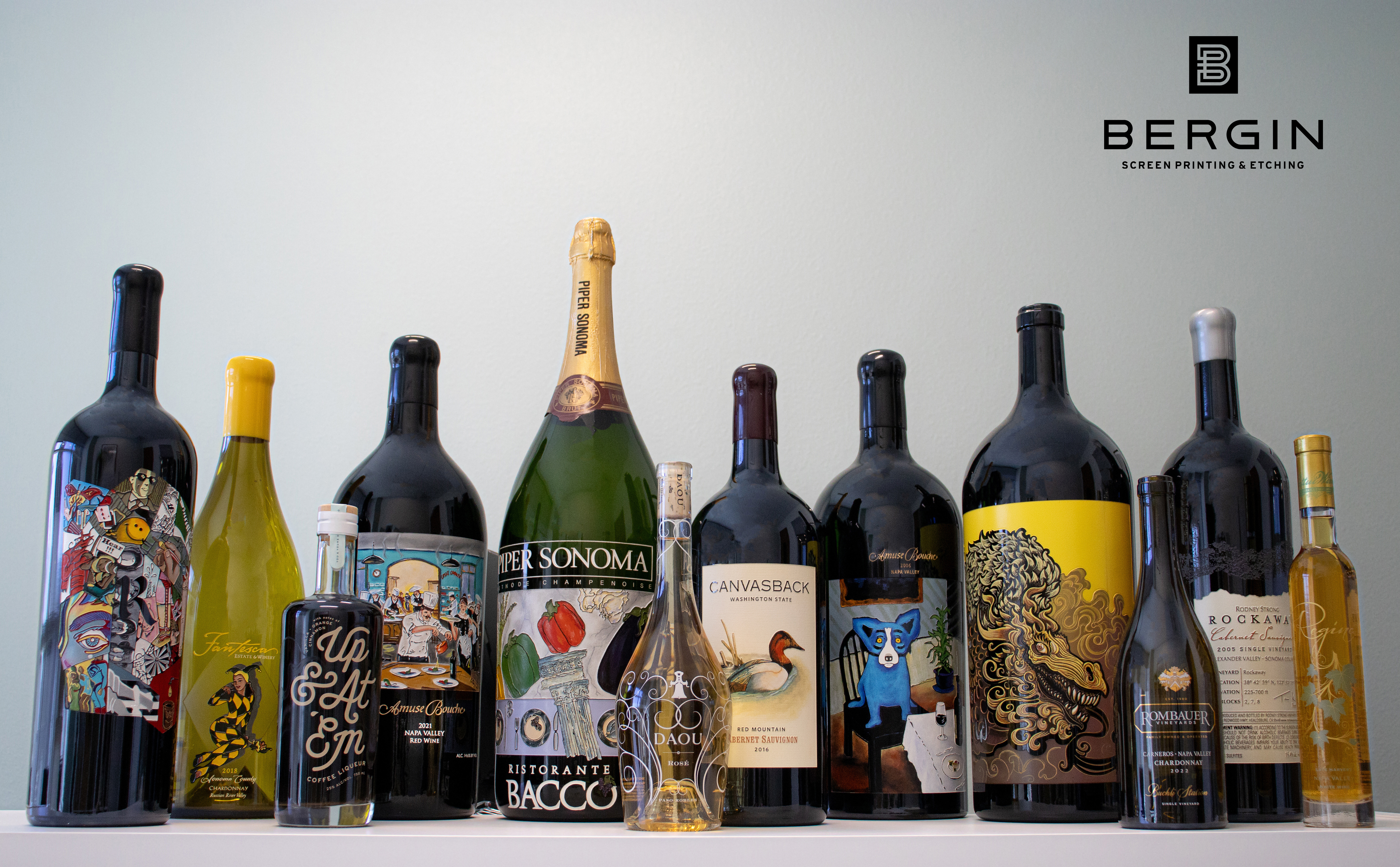 Originating as an etch and paint studio founded in 1989, Bergin quickly garnered attention for providing an artisanal packaging solution unseen in the industry. Among its earliest winery patrons was the esteemed Robert Mondavi Winery, a collaboration that showcased Bergin's meticulous craftsmanship on labels and packaging for some of Mondavi's finest wines. Today they decorate for a wide variety of clients. It has always been Bergin’s goal to provide packaging for brands of all sizes, many starting out as small family-owned wineries who have grown with them over the years.