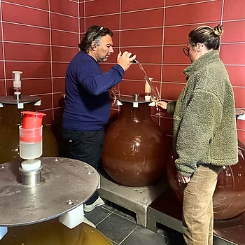 "The pure style of the Wineglobe suits my philosophy to a tee. Something neutral that preserves the raw material, while guarantying sufficient volume for vinification devoid of any chance of deviation. One of the more important advantages is the absence of porosity in glass. I add SO2 at the end of the alcoholic fermentation to get 20 to 25mg/l of free SO2, then there's nothing left to do. As a result, the total SO2 stays low, which is noteworthy. It is much easier to clean than wood, there is no comparison."