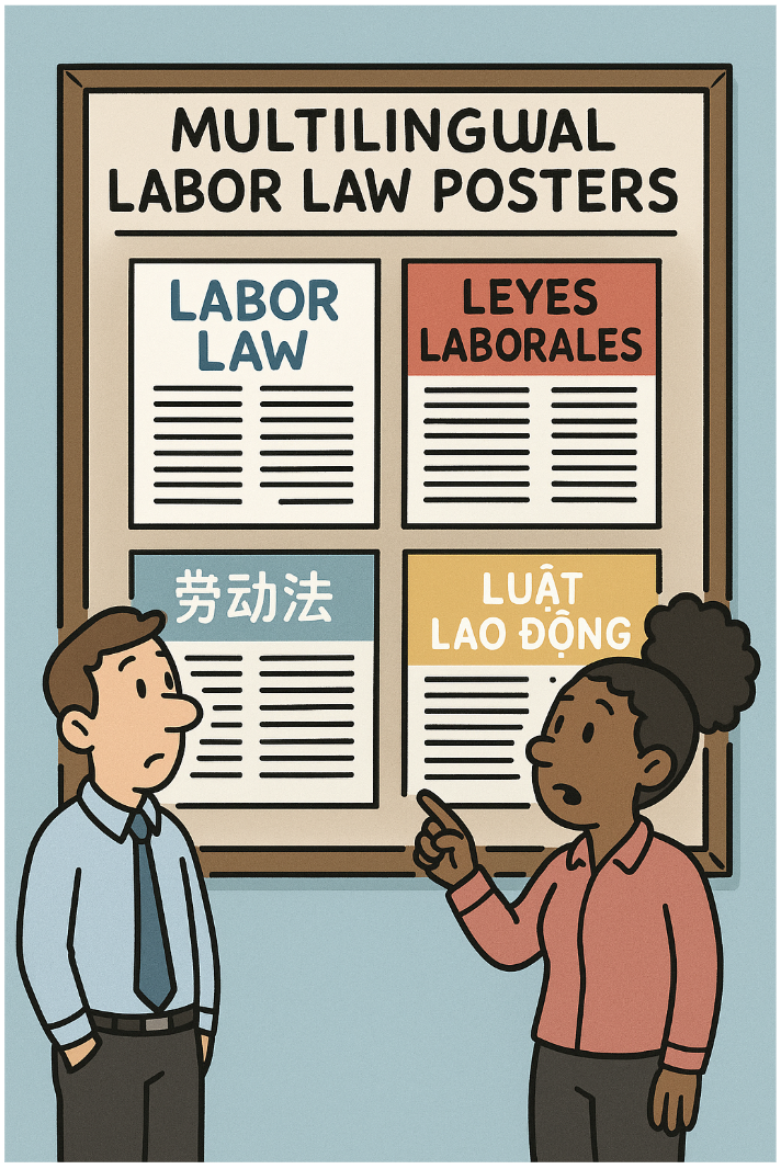 - Immigration and Nationality Act (INA): Employers must provide notices in languages common to a significant portion of their workforce if they are not fluent in English.