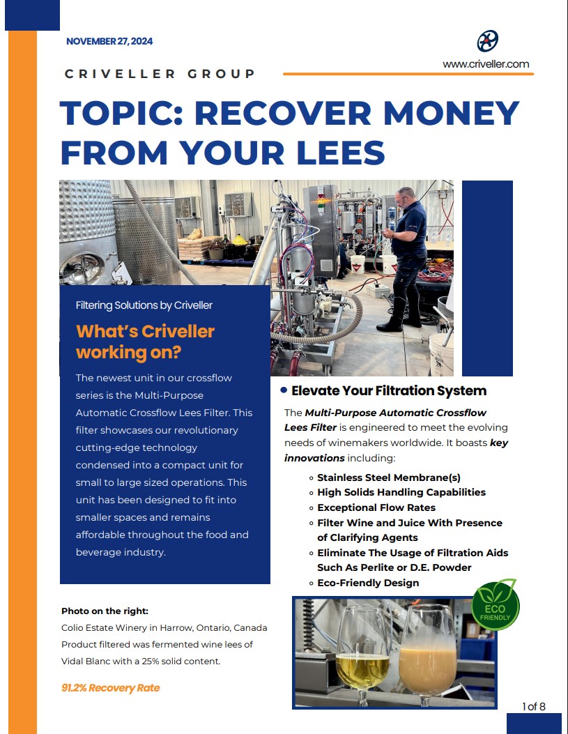 Criveller Group Unveils Groundbreaking C51 High Solids Cross Flow for Wine Lees Filtration.