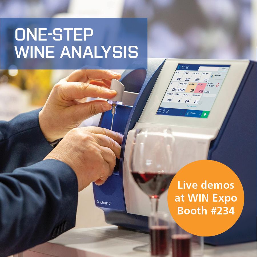 Planning to attend WIN Expo December 5? Stop by booth #234 to visit with our FOSS industry experts for live demos of the OenoFoss™ 2 wine analyzer. Learn more about this fast and easy-to-operate analyzer that provides accurate and precise measurements of key parameters. No reagents, consumables, or sample prep!
