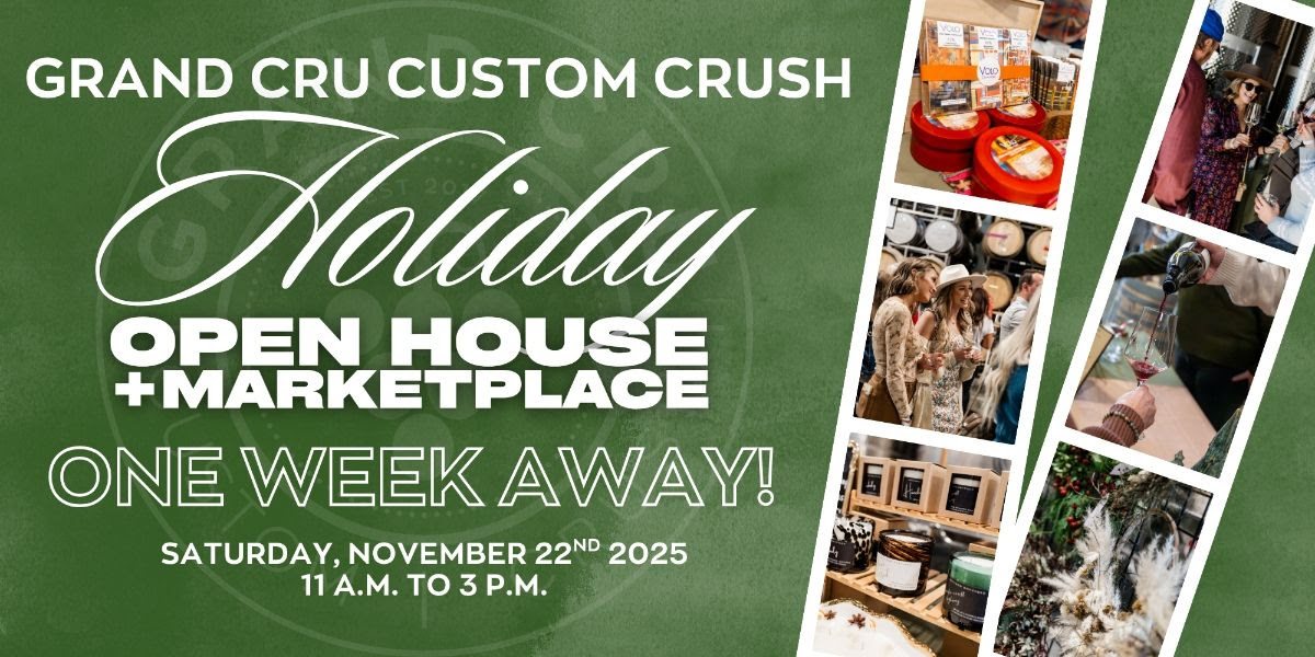 The holidays are coming up fast, and we’re so excited to invite you to our Holiday Open House + Marketplace on Saturday, November 22nd at Grand Cru Custom Crush!