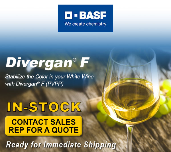 Divergan F (PVPP), BASF’s unique polymerization process produces the purist polyvinylpolypyrrolidone, which is completely insoluble in must and wine. Divergan F is selective in binding phenolic species such as catechins and leucoanthocyanidins with minimal effect on flavor and aroma.