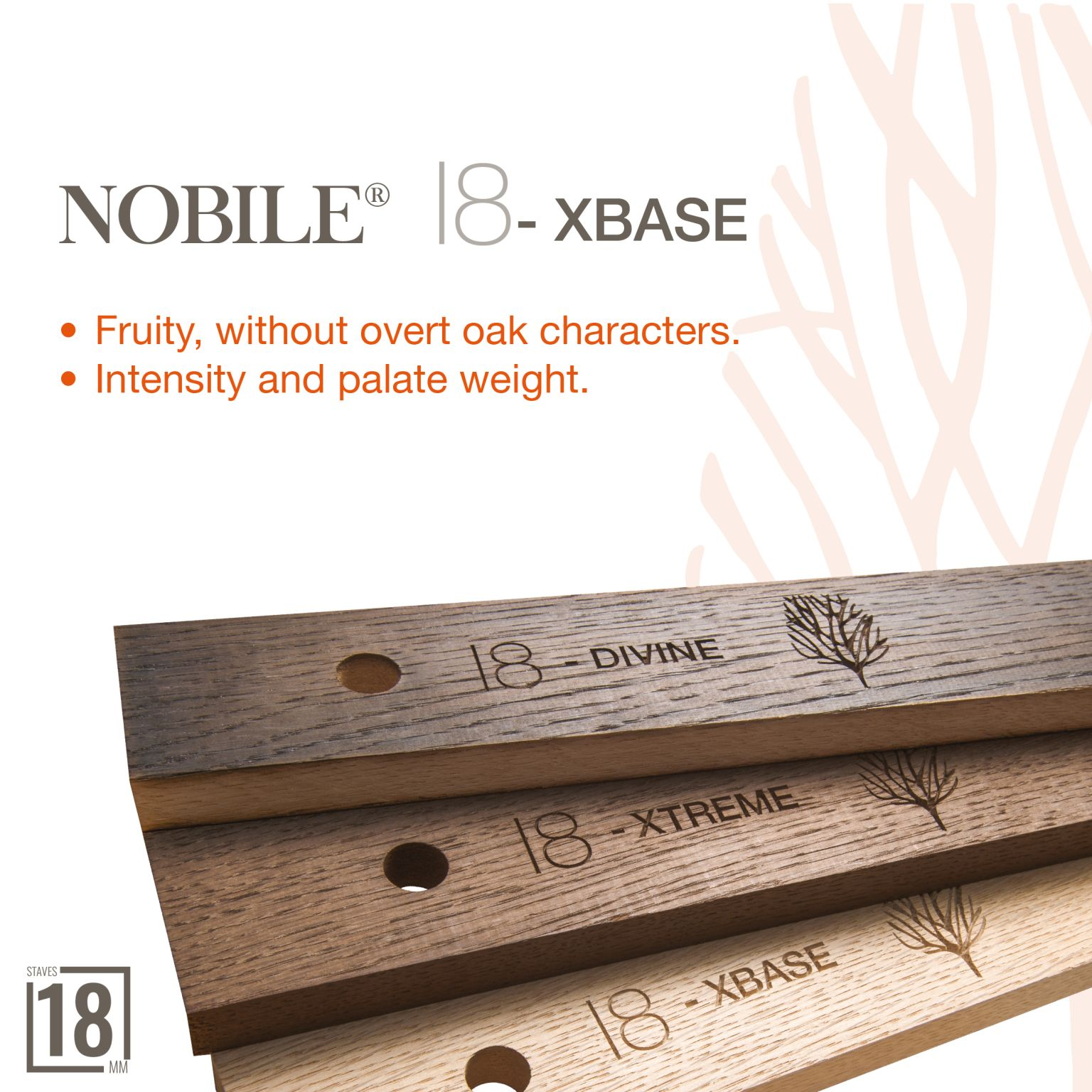 Unlock intensity and rich palate weight with every sip! Crafted from premium French oak and featuring homogeneous toasting, Nobile® XBase Oak Staves deliver a powerful, fruit-forward profile without overpowering oak characteristics.