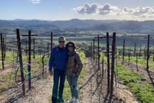Michael and Kara Busselen, the Owners of Woodhawk Vineyards, farm 21 acres of world-class Cabernet Sauvignon for Silver Oak, situated 1,000 feet above sea level, overlooking the Alexander Valley and Russian River at the northern end of Sonoma County. They're also starting to make some of their own high-end Cabernet.