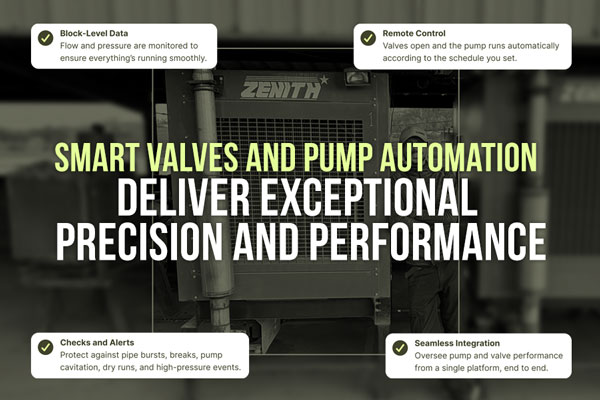 Building it on top of the block-level visibility that smart valves provide allows for automated safety checks to prevent damage from dry runs or pressure spikes, and for next-level optimization, fine-tuning schedules and maximizing pump efficiency.