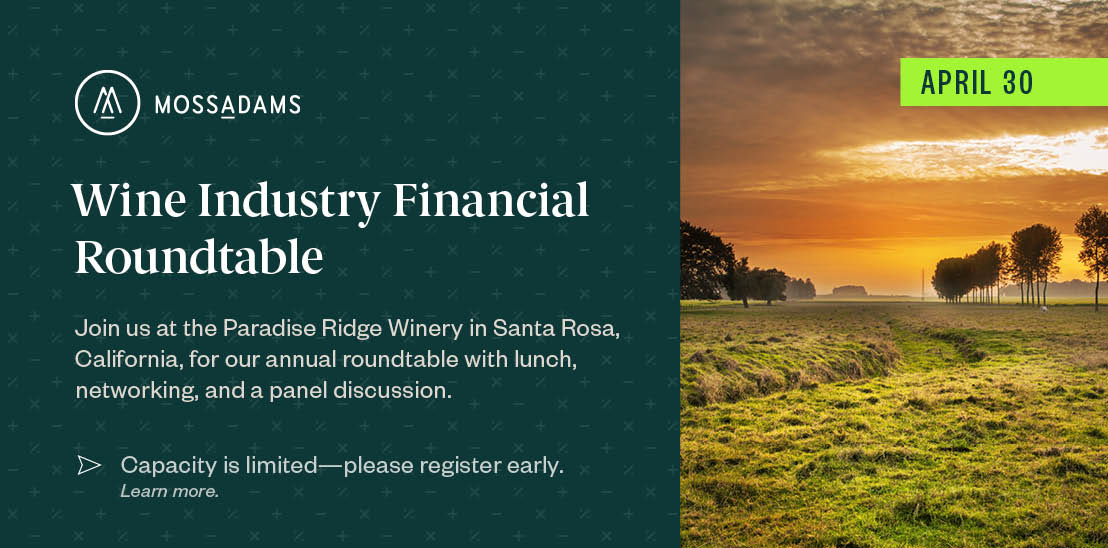 Join us at the picturesque Paradise Ridge Winery in Santa Rosa, California, for our annual Wine Industry Financial Roundtable for lunch, networking, and an industry-specific panel discussion.