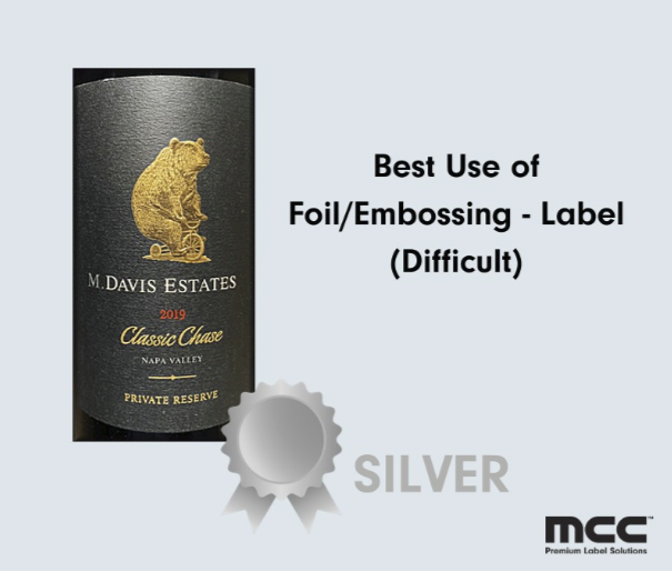π₯ Silver: Best use of foil/embossing – label (difficult) for Classic Chase by M. Davis Estates Private Reserve