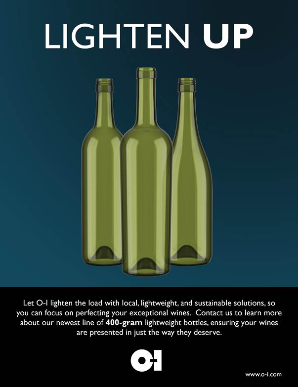 O-I’s lighter-weight glass bottles, which comprise one-third of their wine bottle portfolio, are supporting sustainable initiatives by offering a lower carbon footprint. “The lightweight portfolio is gaining considerable momentum, and we’re receiving a lot of positive feedback,” says Jon French, O-I Commercial Director, Wine. “Many of our customers have expressed that, if they haven’t already started moving into lightweight offerings, they are strongly considering the transition.”