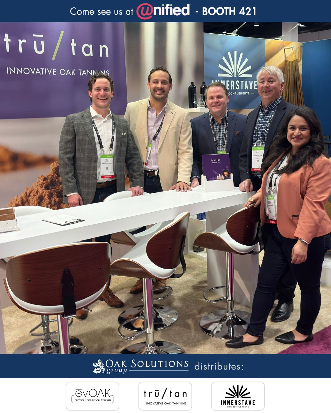 Oak Solutions Group distributes: ēvOAK, trū/tan, and Innerstave.