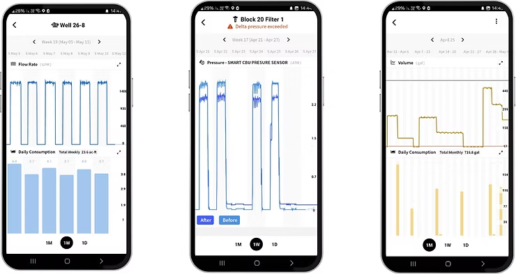 Enables real-time and historical hydraulic insights on mobile without needing to access the web app.