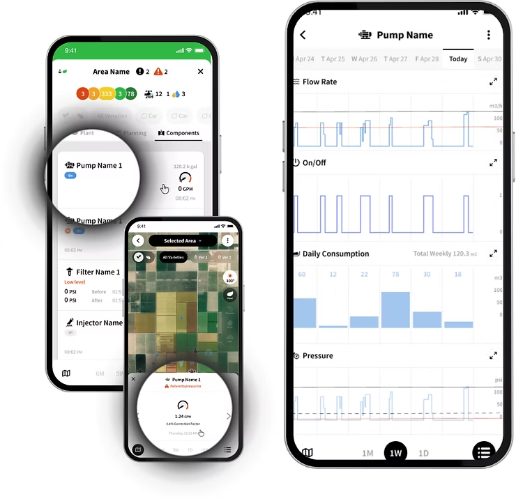 You can now view graphs for all hydraulic components on mobile — just like on the web. Tapping a component (from the list in Planner/Plant/Pivot, or directly from the map card in Plant) will open a detailed historical graph view: