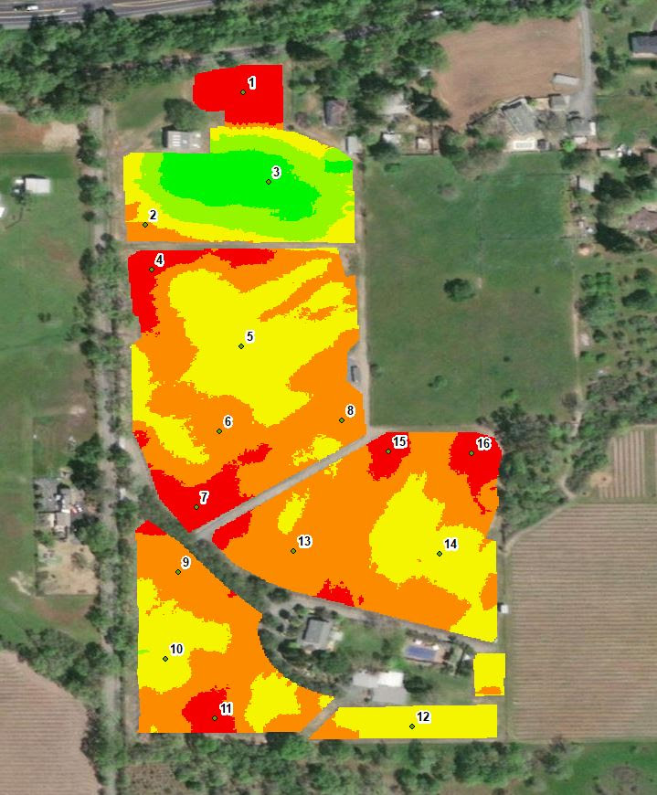 Numbers indicate where we took soil cores with the Powerprobe. Some blocks are way more variable than others.