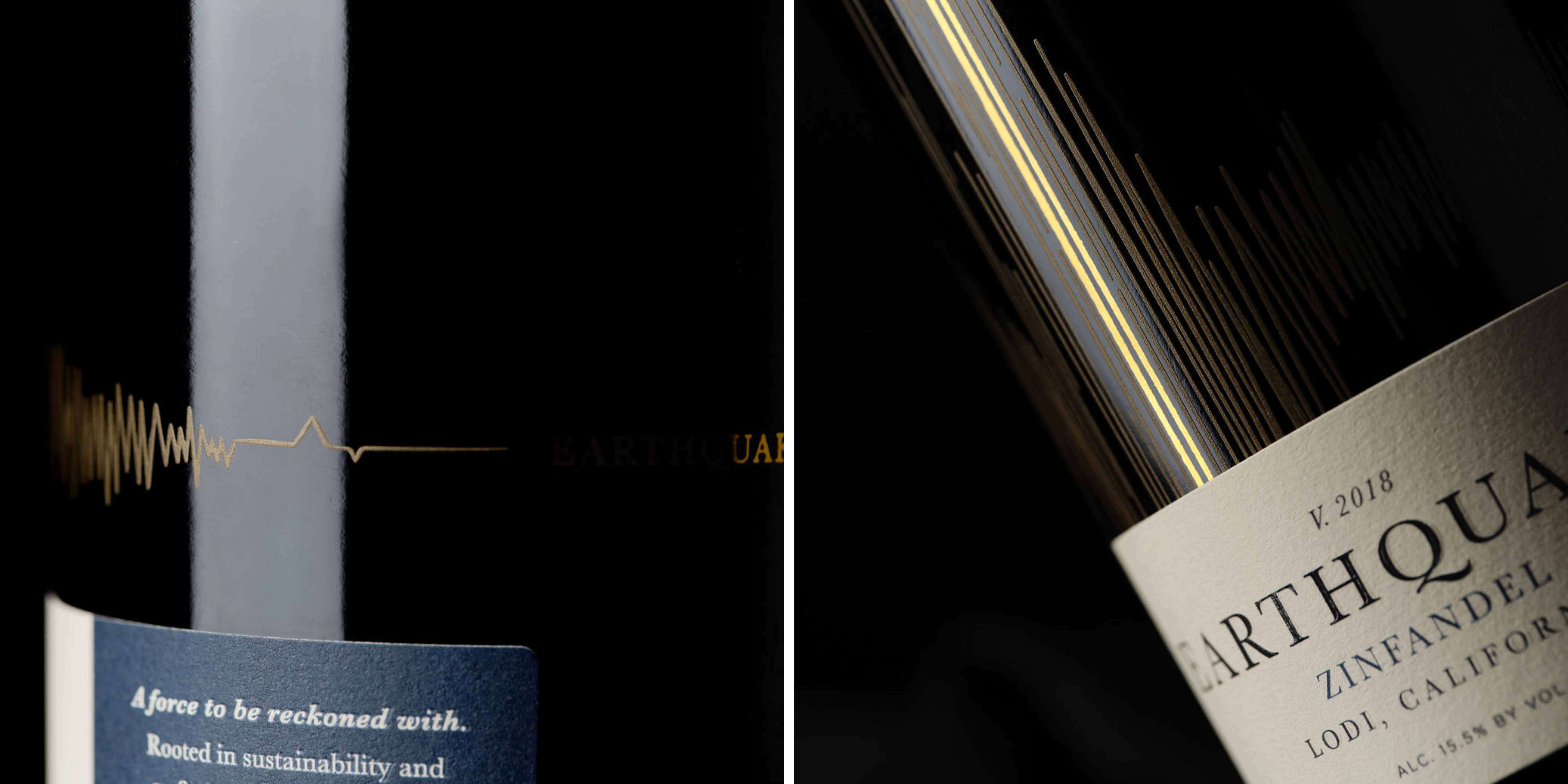 Look no further than Michael David Winery. Their iconic paper labels were thoughtfully redesigned by Makers & Allies who crafted Earthquake’s new look combining two mediums for a ground-shaking look. The new label features a screen printed seismograph with accents of precious gold and an elegant paper label.