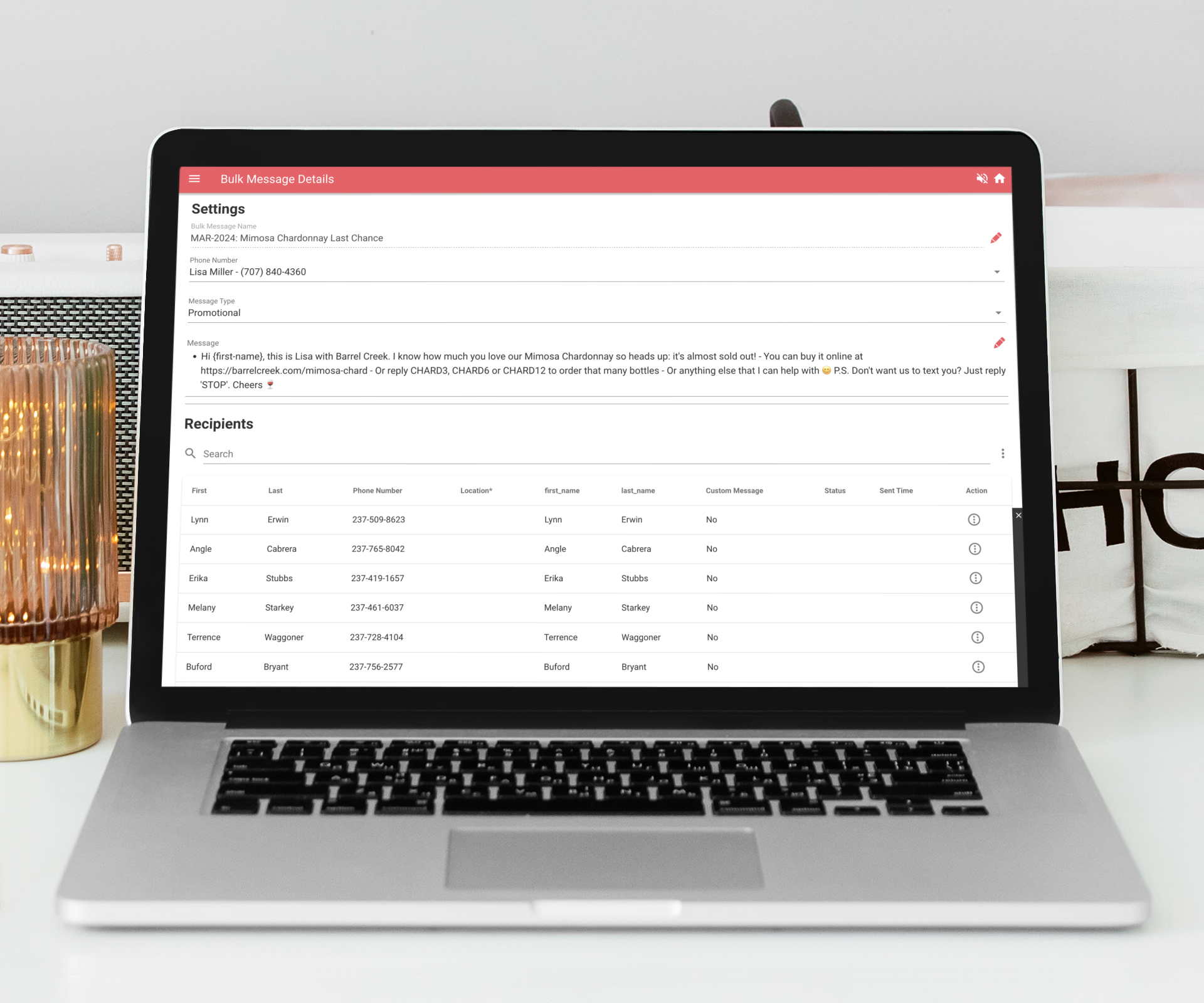 Bulk Messages make it possible — and easy — to text dozens, hundreds, or thousands of people at once; it’s one of the most popular features in RedChirp. Wineries can use the Bulk Message feature for informational and/or promotional messaging.