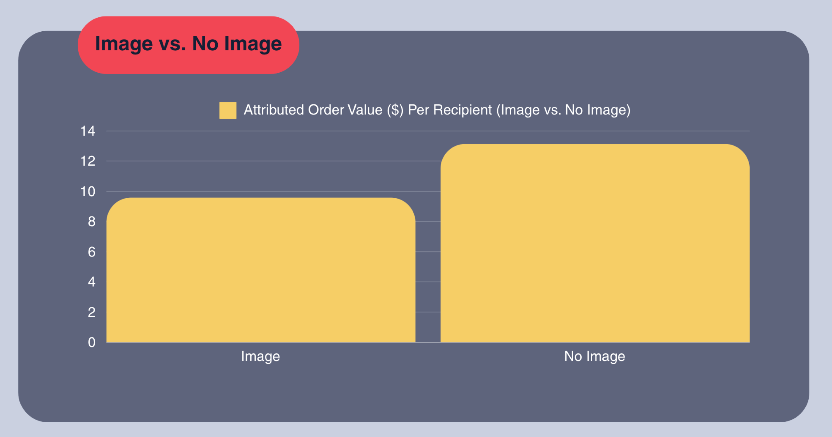 With this much data, we were able to find that the Bulk Messages that did not include an image resulted in a higher order value per recipient than those that did. Does that mean you should never include an image? Nope. It’s much more nuanced than that.