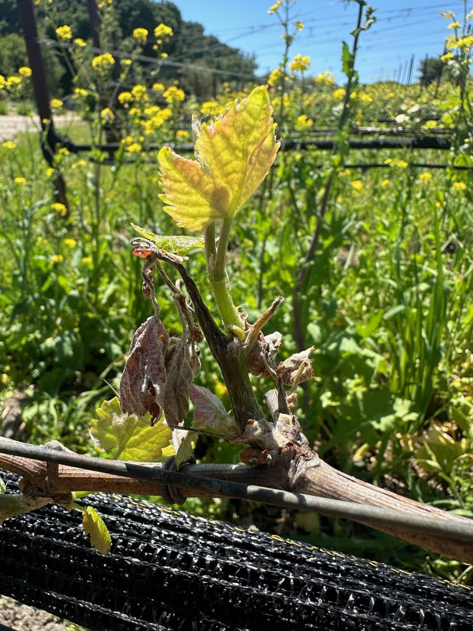 Do I choose the survivors or the second wave of growth? As a physiology refresh, a dormant grapevine bud is a compound bud composed of a large primary and a secondary and often a tertiary bud. The primary is usually the first that pops off and in the case of a frost event, is the one that gets smoked. This bud is usually the most fruitful, but by no means the “best”. The fruit produced from secondary and tertiary bud may be smaller but will end up giving you high-quality wine just the same. In fact, given that these buds essentially break bud a couple weeks later may be beneficial if you want a later harvest date or even better weather during fruit set.
