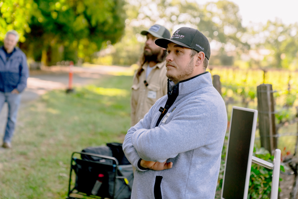 Andrew Oliver, Vineyard Manager at Antinori, standing with Devon Wright, Lumo CEO, at Napa RISE.