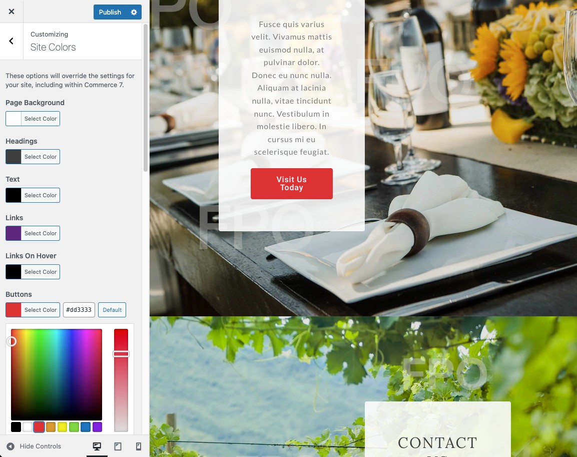 Most importantly, these templates will connect to a e-commerce store on Commerce7, CompleteDTC by Vinoshipper and WineDirect with the click of a button – and all the color and font changes can be customized to match the WordPress pages. It’s now as easy to select or change an e-commerce platform as it is to change a photo.