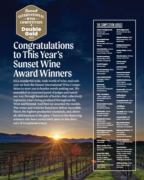 The Sunset International Wine Competition is designed to attract all wineries interested in reaching the Western wine drinker and is juried by the best judges in the industry, who understand and appreciate the Western palate and lifestyle