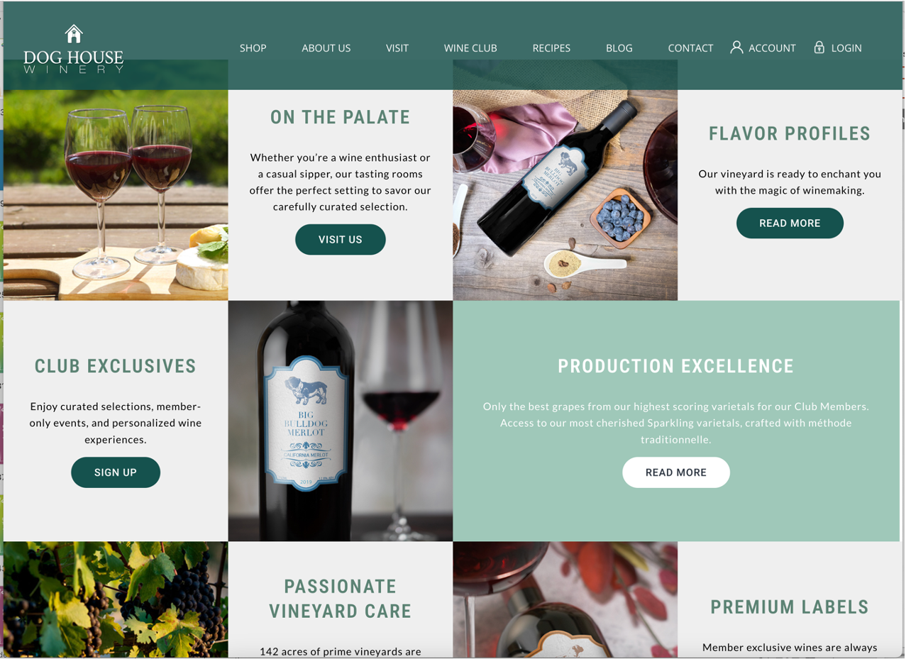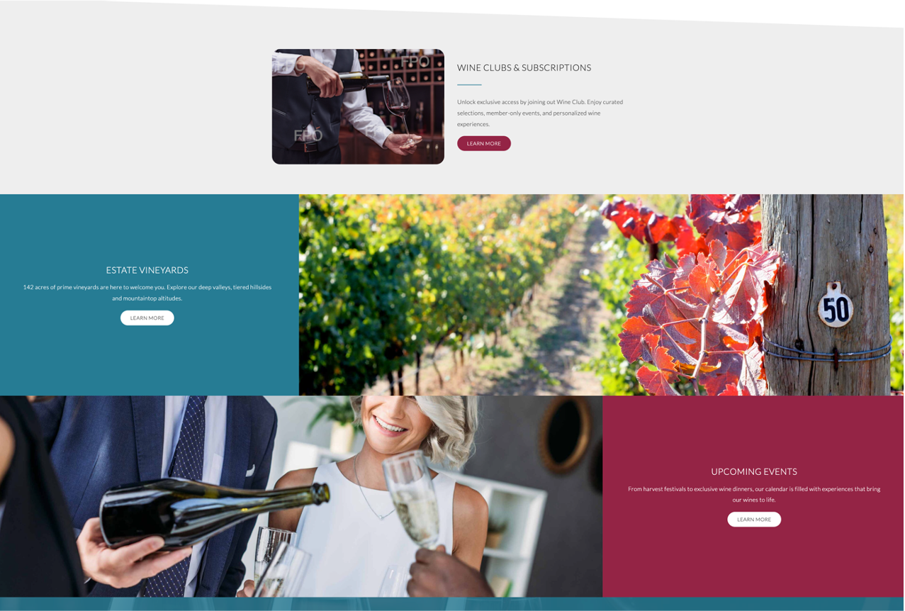 AI is particularly helpful in extending backgrounds or removing elements from photos that would have taken many painful hours in Photoshop. Here are some examples from a website we were building for GooseRidge on WineDirect. They required these very long horizontal images that were tough to find, so we used AI on almost all of the bottle shots to extend the sides so the image would work in the layout.