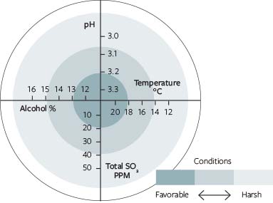 Extremes in one or more of these properties can have a compounding inhibitory effect on the ability of malolactic bacteria to consume malic acid. For example, if a wine has low pH and high SO2, that will be more antagonistic to the bacteria than low pH alone.