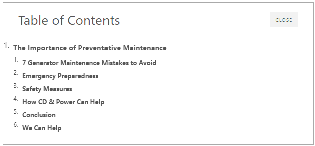 Our maintenance programs are not only designed to keep your generator in peak condition and avoid generator maintenance mistakes but also integrate seamlessly with your broader emergency response strategy. By partnering with CD & Power, you can rest assured that your generator will be meticulously maintained and ready to deliver power during any crisis.