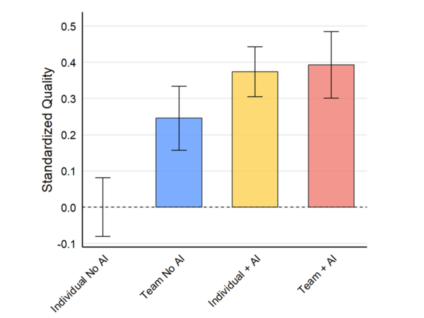 In a recent Harvard Business School study of small marketing teams within Procter & Gamble, researchers found that collaboration with GenAI made one-person teams more productive than two-person teams that did not collaborate with AI.