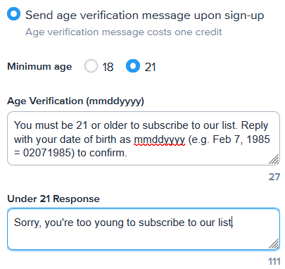 VinterActive’s new age-verification tool automatically sends new subscribers a text message informing them they must be over 21 to join your SMS list and asking them to confirm their date of birth. Adults over 21 are automatically added to the list, while minors are politely turned away.