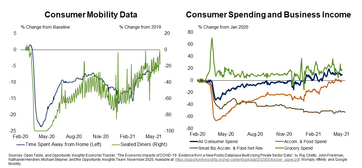 Additionally, the consumer spending metric applies to purchases from all food and accommodation services whereas the net revenue metric only considers small businesses, perhaps indicating an additional mismatch in the reopening process.