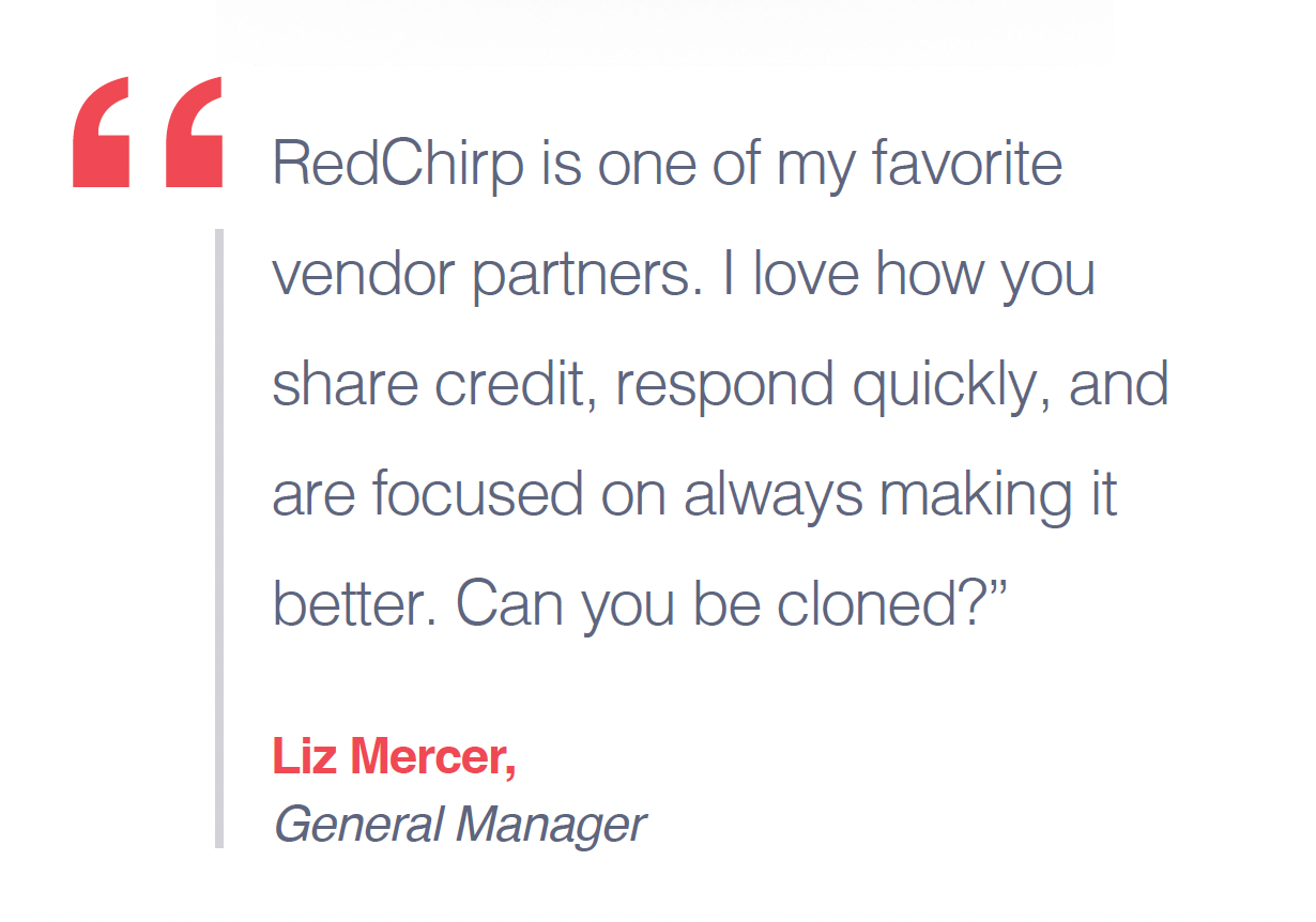 - Nearly $11,000 in new wine sales — more than a 13x return in investment! —was generated through the RedChirp’s web chat feature alone.