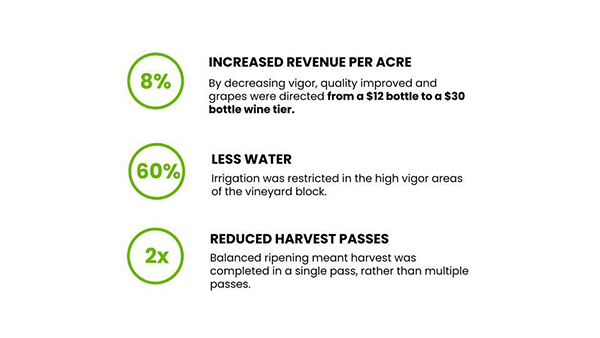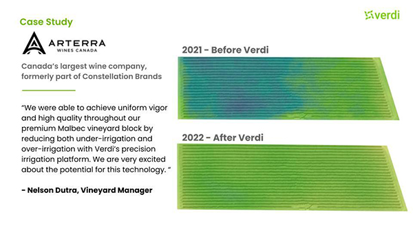 Verdi has demonstrated significant ROI from its cutting-edge solution through higher yield and improved quality by eliminating crop variability due to soil type, elevation, vine maturity, and variety.