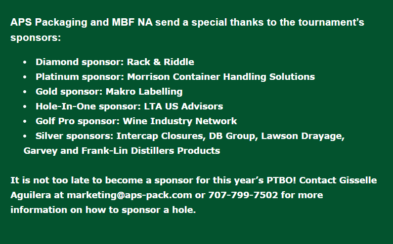 This is the fourth year of the annual Par Then Bar Open (PTBO) tournament and the event has already reached its full capacity for players, but those interested in sponsoring should contact Gisselle Aguilera, APS Marketing Manager, for more information at 707-799-7502 or marketing@aps-pack.com. If you want to learn more about PTBO, visit parthenbaropen.com!