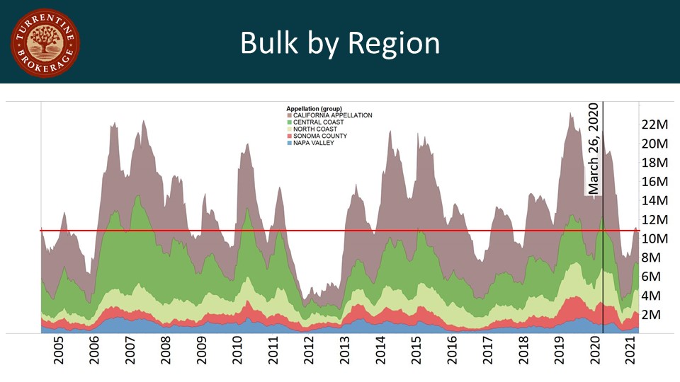 Also, many wineries are preparing for the return of sales in the on-premise channel, however fast or slow that might be. Bulk wine actively for sale and grapes available are down considerably from last year, and the floor and ceiling of prices are higher for nearly every variety in every region. Indicators are that we have transitioned away from an excess market. While prices have increased from last year, the demand for bulk wine and grapes is driven by the wineries with big brands in chain retail. Buyers are paying more, but are also price sensitive, and some have backed away from the market as asking prices increased. Also, while markets have been active, they could slow as large brands have already contracted a good amount of their supply.