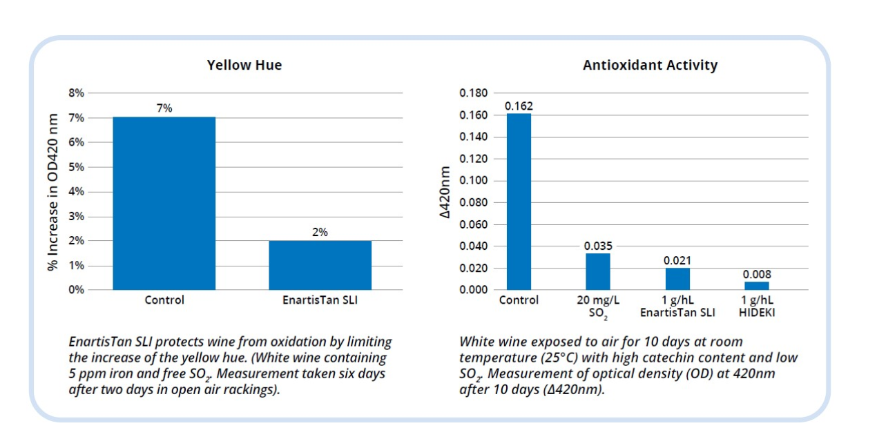 - EnartisTan SLI is a tannin extracted from untoasted American oak using a unique process that avoids exposure to high temperatures. This enables it to maintain high antioxidant efficacy capable of stabilizing redox potential and preventing oxidation and the possible appearance of reduced odors as early as the end of alcoholic fermentation.