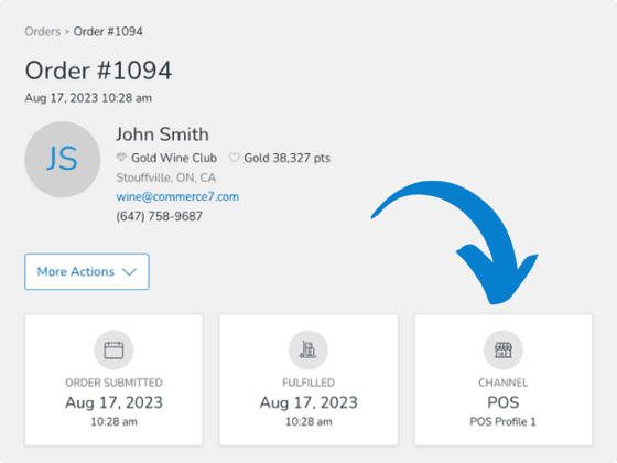 If an order was taken on the POS, you can now see which POS Profile the transaction was placed on from the Order Channel card.