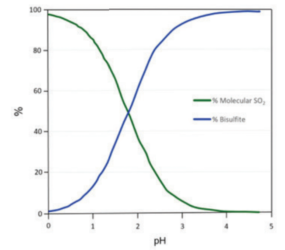 Molecular SO2 concentrations should be >0.8 g/L to achieve the antimicrobial effects (the antioxidant properties can be achieved at lower molecular concentrations). This means, as pH increases, more SO2 must be added to achieve a 0.8 g/L molecular concentration.