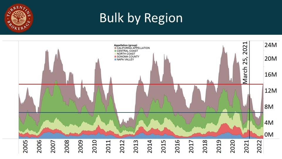 - Conversely, the smaller harvest in the North Coast in particular has limited bulk wine available, and there have been a few sporadic listings from coastal regions throughout the year.