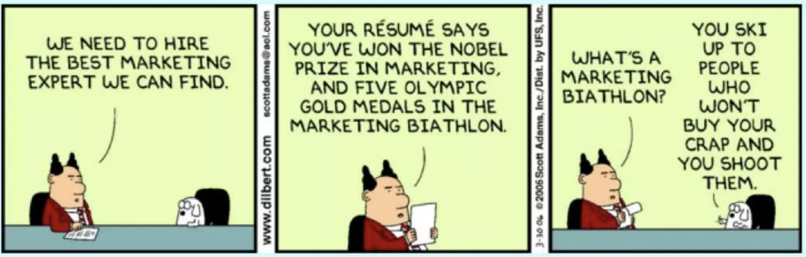 This example combines so many mistaken assumptions about marketing. First, a conjecture that marketing performs immediately at full steam. Second, an lack of understanding that regular segmented emails do bring a higher % of conversions, but realizing the lists are smaller so the number of sales might seem small. (But, they add up.) Third, the inconsistency of including manpower cost in one channel but not another. Finally, unrealistic metrics for success. I have heard some creative KPIs before, but never that marketing shouldn’t cost anything – that the benchmark was comparing any marketing costs to the cost of doing nothing. Doing nothing will always be cheaper. And easier.