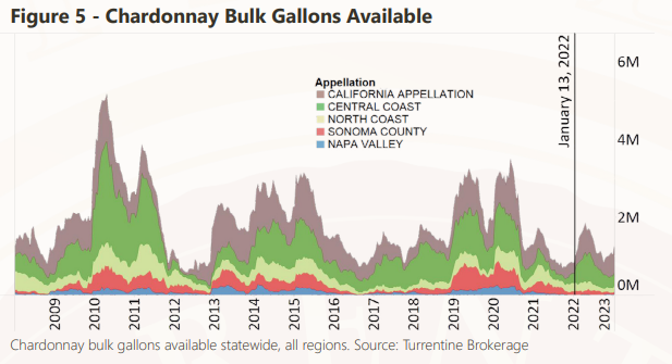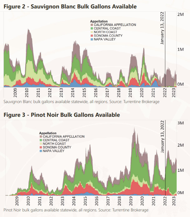 - Supply of 2022 California Appellation Sauvignon Blanc is similar to last year at this time, and 2021 wines are still available. Demand is softer now than it was last year at this time.