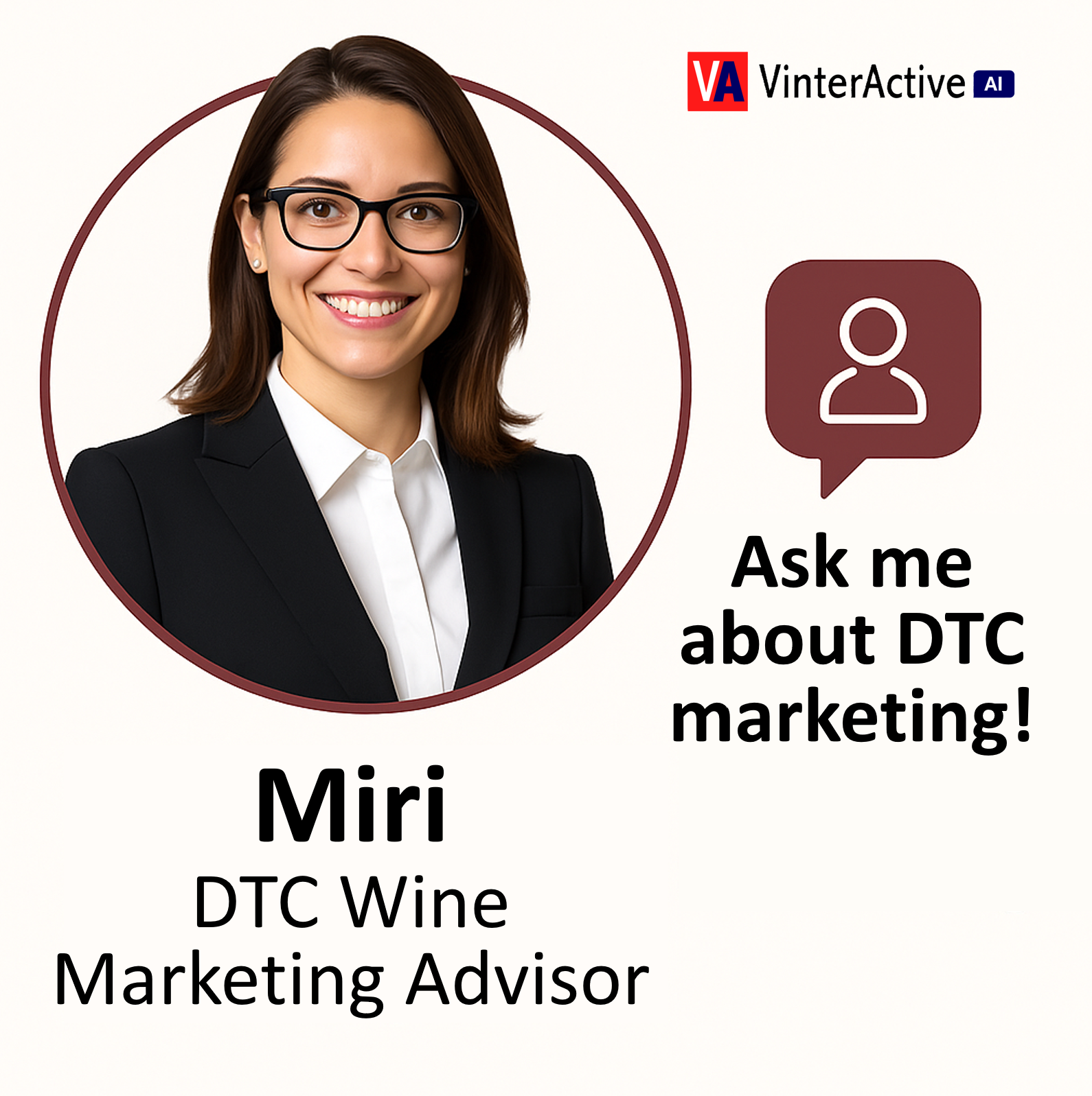 Miri’s extensive training includes 20 years of proprietary DTC wine marketing data, focusing on best practices in tasting room, wine club, e-commerce, email, and SMS wine marketing.