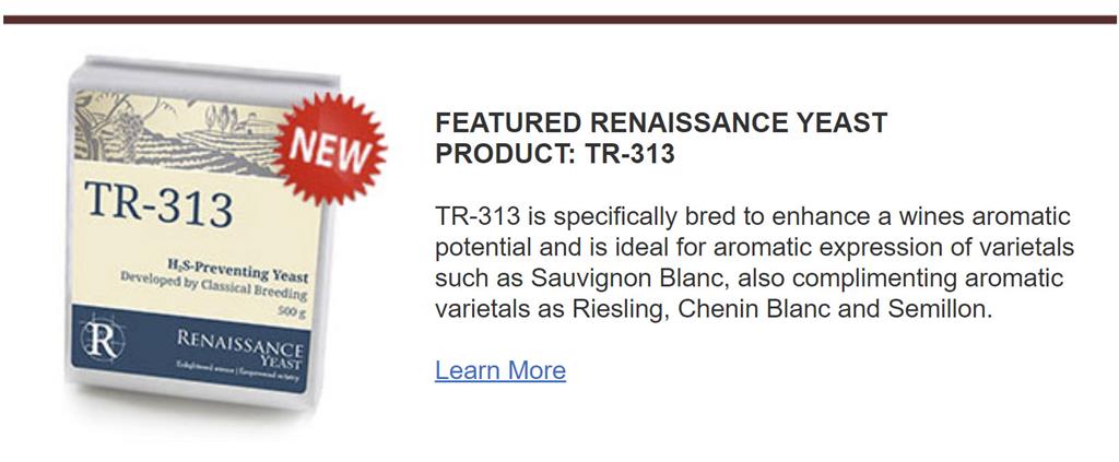 Renaissance Yeast has spent over five years selectively breeding yeast with the strain UCD 932 (H2S-preventing strain from the University of California Davis) with other wine yeast strains. They isolate and select offspring with the H2S-preventing trait as well as other traits that give them excellent fermentation kinetics and normal levels of SO2 production.