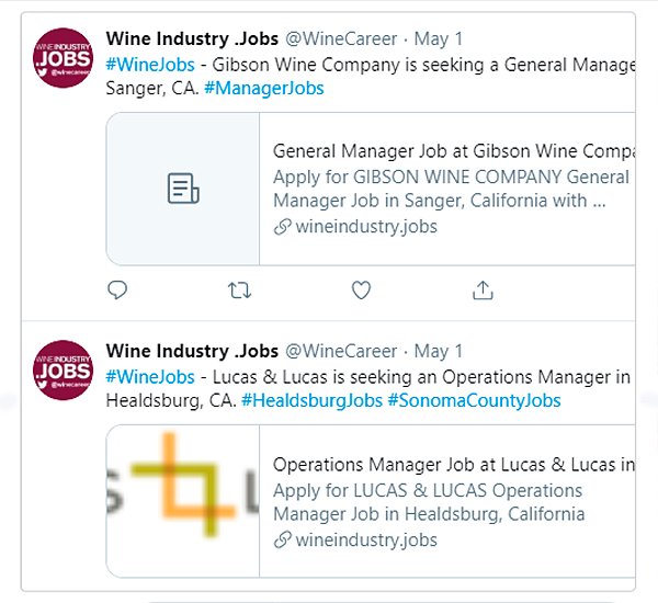 WIN Jobs ensures employment listings receive maximum exposure to an audience of over 100,000 qualified industry professionals through channels that include the wineindustrynetwork.com news feed, WIN's Facebook, Twitter, and LinkedIn social channels, the Afternoon Brief daily email newsletter and category-specific bi-weekly newsletters. Additionally, WineIndustry.Jobs partners with Indeed.com, a leading jobs site, to feature job listings and create even broader exposure across the wine industry.