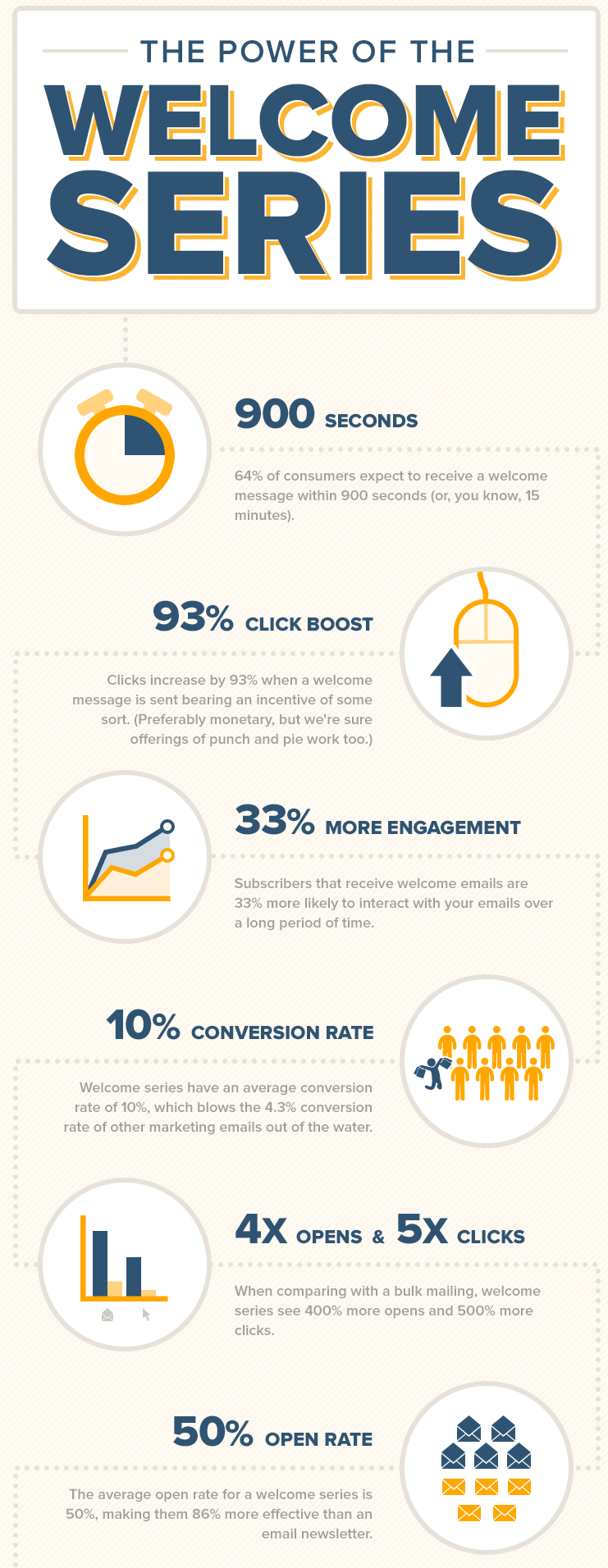 In addition to saving time and delighting consumers with real-time response, prospects receiving an automated welcome series generate 2-3 times more initial sales conversion and 33% more engagement over the course their customer lifecycle.