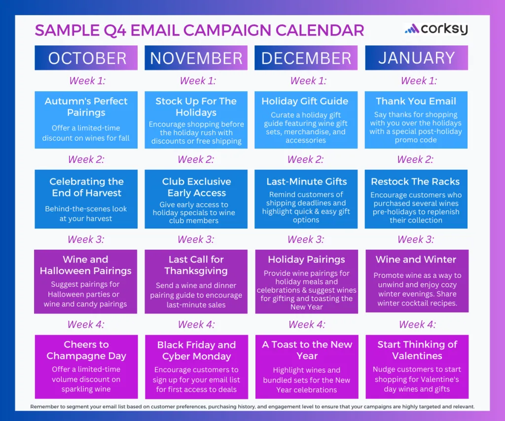 Remember to review and update your strategies based on the performance of previous years. Flexibility and adaptability are essential in ensuring success during the holiday season. Good luck with maximizing your winery’s sales in quarter 4!